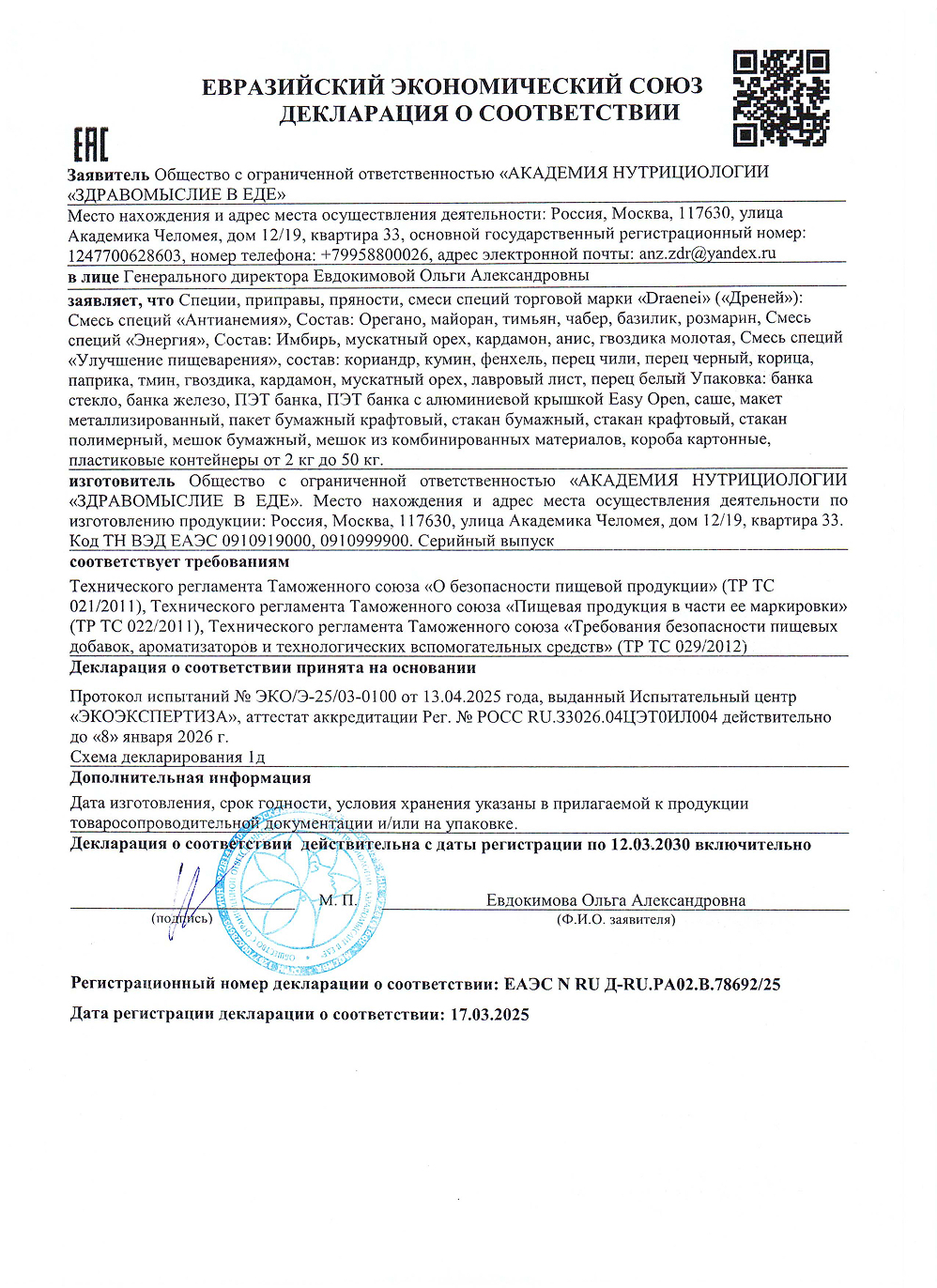 Создаёт приятный пряный вкус и аромат, делая здоровое питание более привлекательным и устойчивым